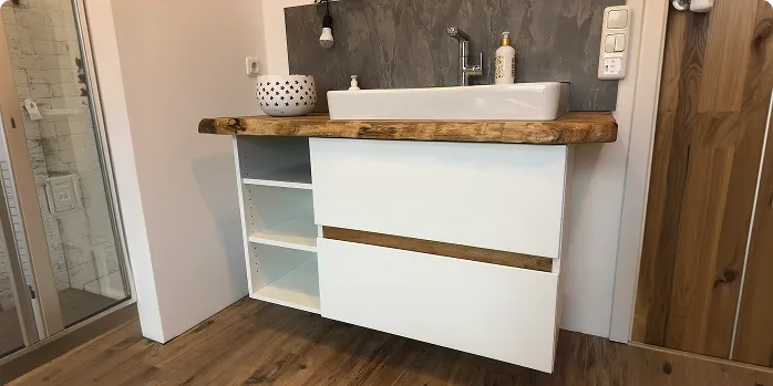 Maßgefertigter Möbelbau als eigenständiger Leistungsbereich für individuelle Einzelstücke und Einbauten.